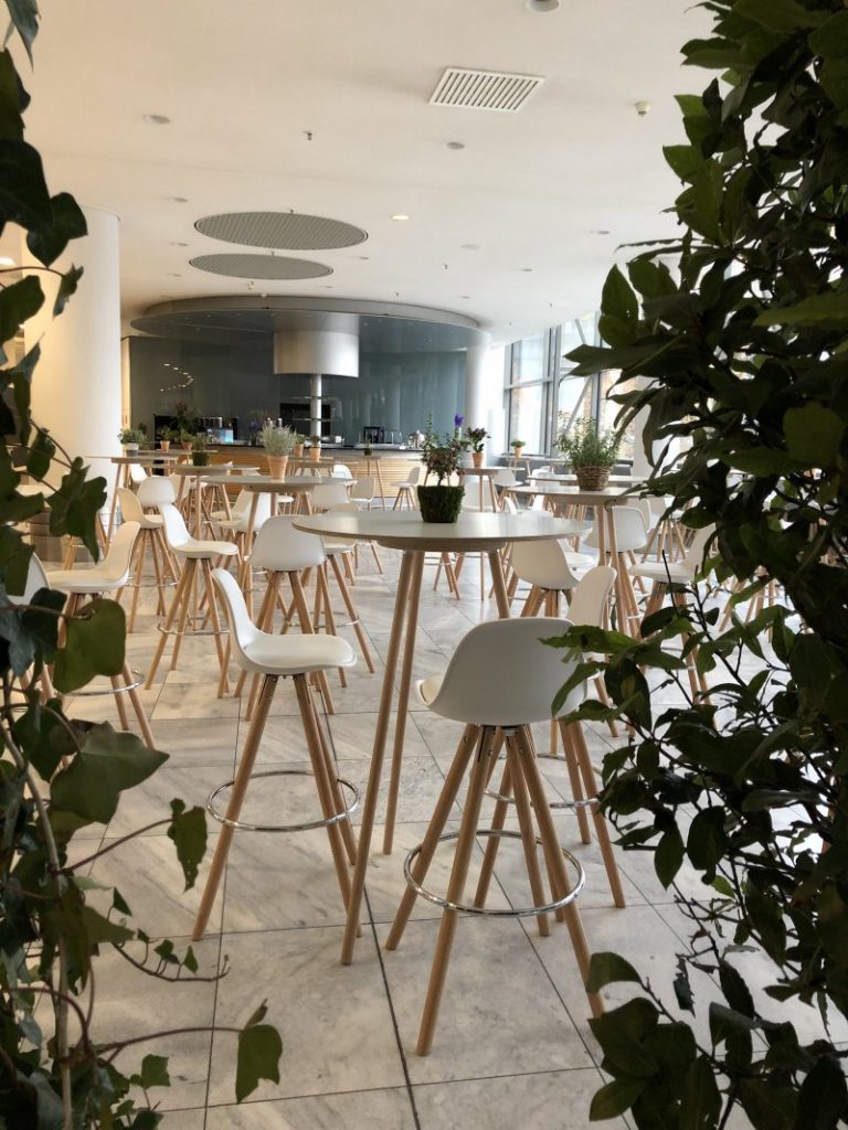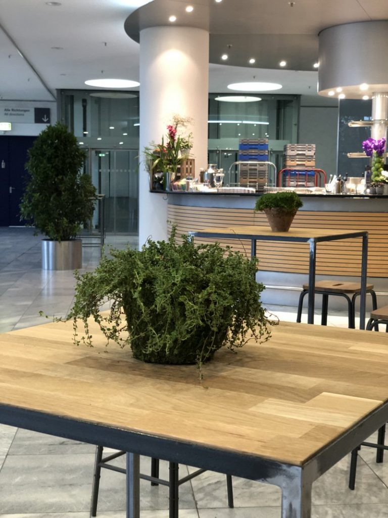 Streetfood über drei Etagen: Im Rahmen eines Firmen-Events begeisterte ein riesiges kulinarisches Angebot im Congress Center der Messe Frankfurt rund 1.000 Gäste. Alles, was hip und lecker ist, kam in entspannter Loft-Atmosphäre auf den Tisch. Die Dekorationselemente orientierten sich am urbanen Hygge-Design: Schicke Möbel aus Eisen und Holz wechselten sich mit bunten Hockern ab; dazu bildeten üppige Floral-Arrangements wie moosbewachsene Übertöpfe, Hängepflanzen, Kräuter und appetitanregende Gemüse-Dekorationen einen Kontrast zu Backstein- und Holzwänden.